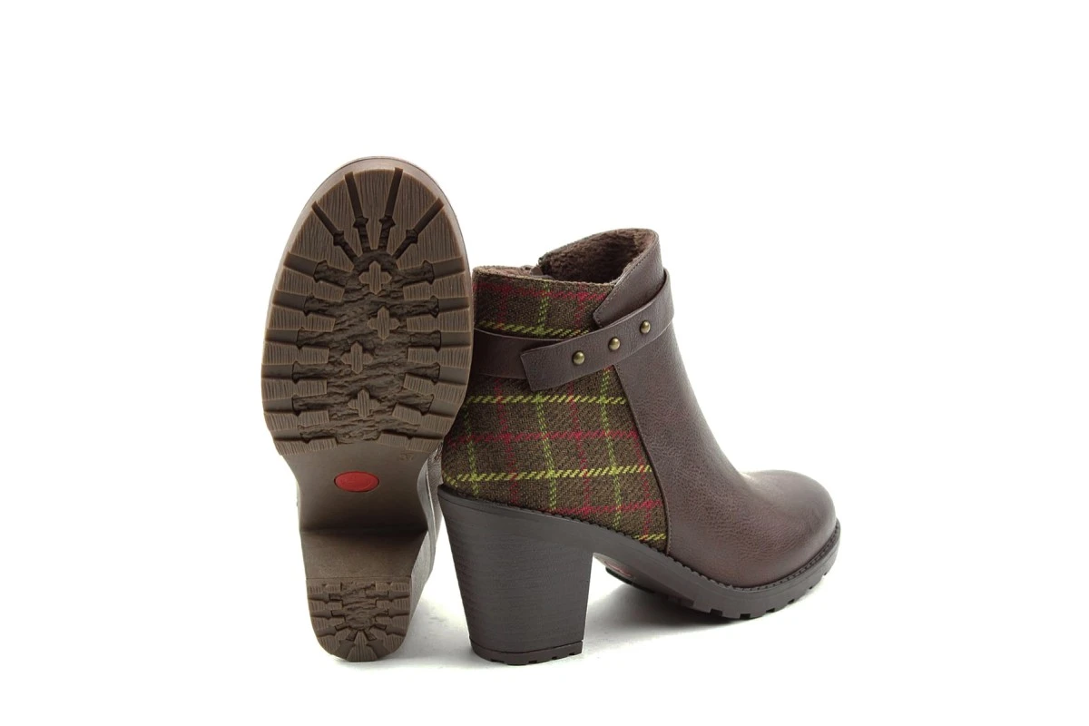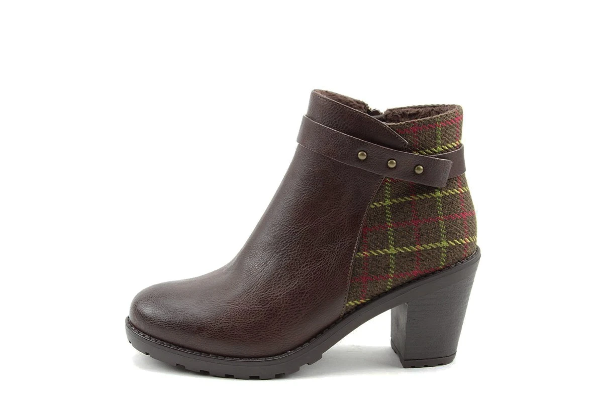 Heavenly Feet Rhona Chocolate Check Brown Block Heel Vegan Ankle Boots
