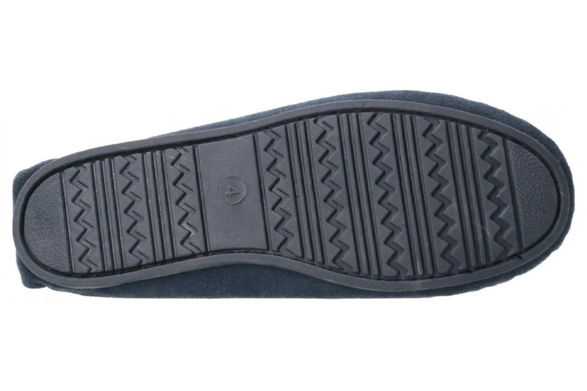 Hush Puppies Allie Women’s slippers provide comfort and warmth. The classic moccasin style slipper has a soft navy genuine suede upper with a feature crimped toe seam and decorative threaded shoe-laces around the sides that come together to create a cute front bow. The plush cream faux fur lines the inside of the slipper and the footbed too for an all-round cosy feel. These new Hush Puppies Allie slippers also have a memory foam comfort cushioned footbed and a textured rubber outsole for stability. The Hush Puppies navy label branding on the side of the slipper in matching navy colour completes the design.