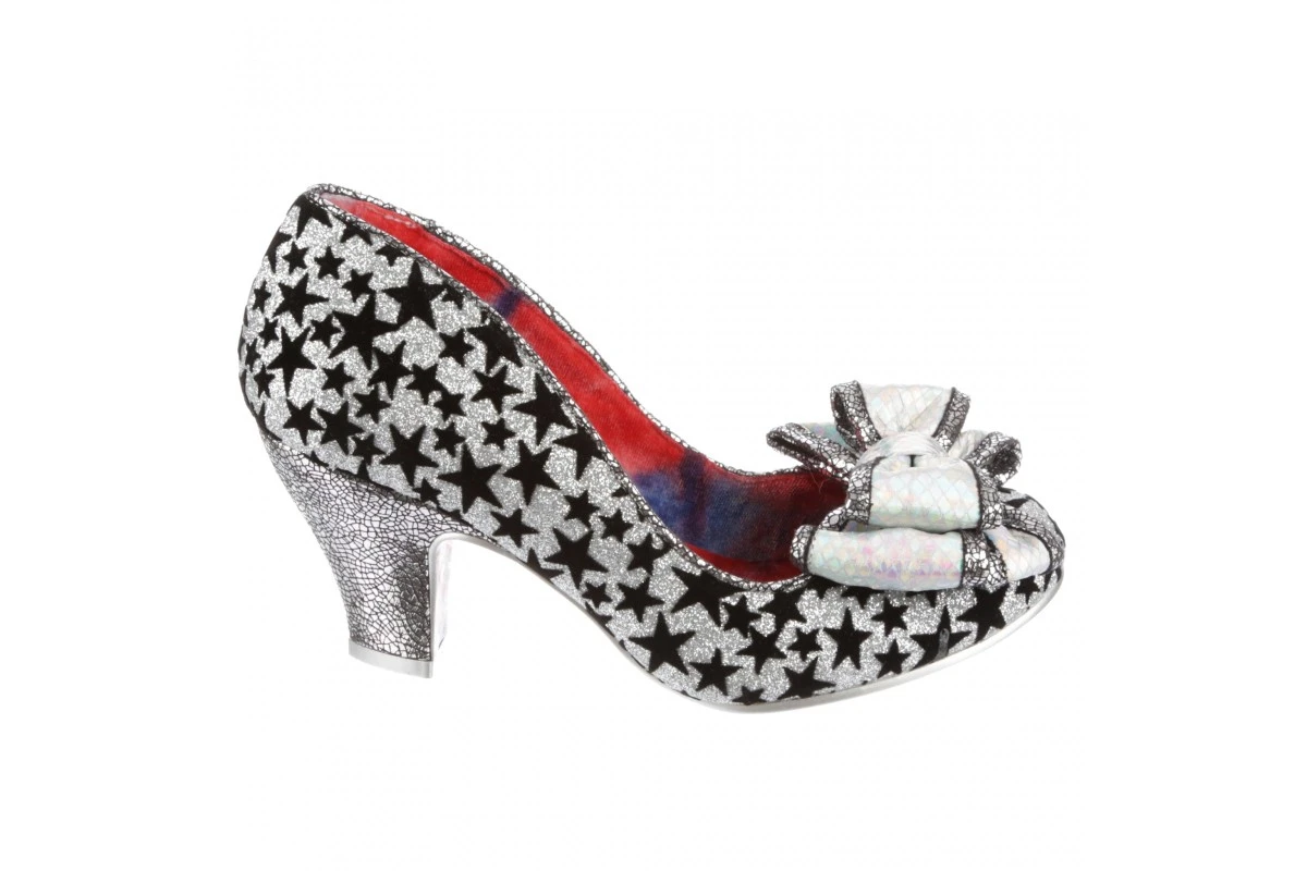 Irregular Choice Ban Joe Silver Glitter Black Star Mid Heel Court Shoes