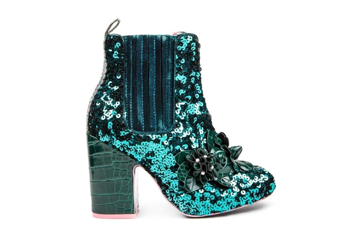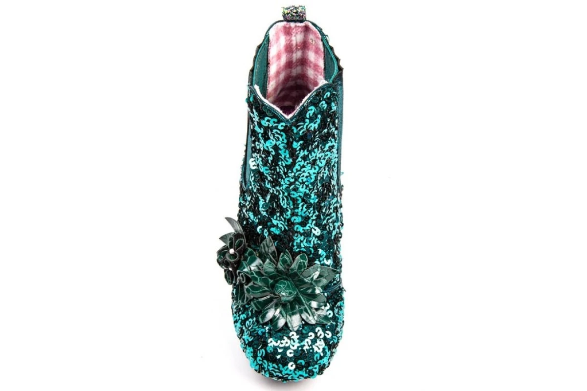Irregular Choice Garden Pickle Teal Green Sequin High Heel Ankle Boots