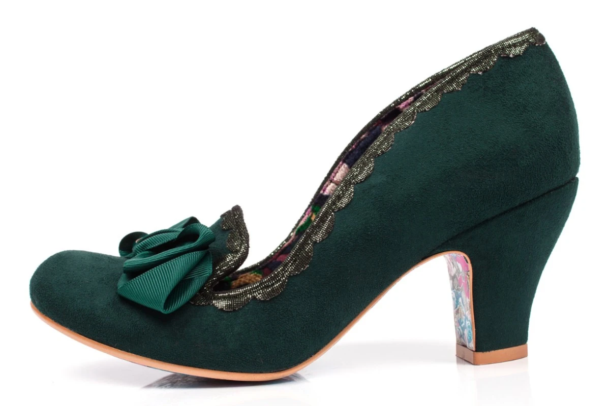 Irregular Choice Kanjanka Green Faux Suede Mid Heel Shoes