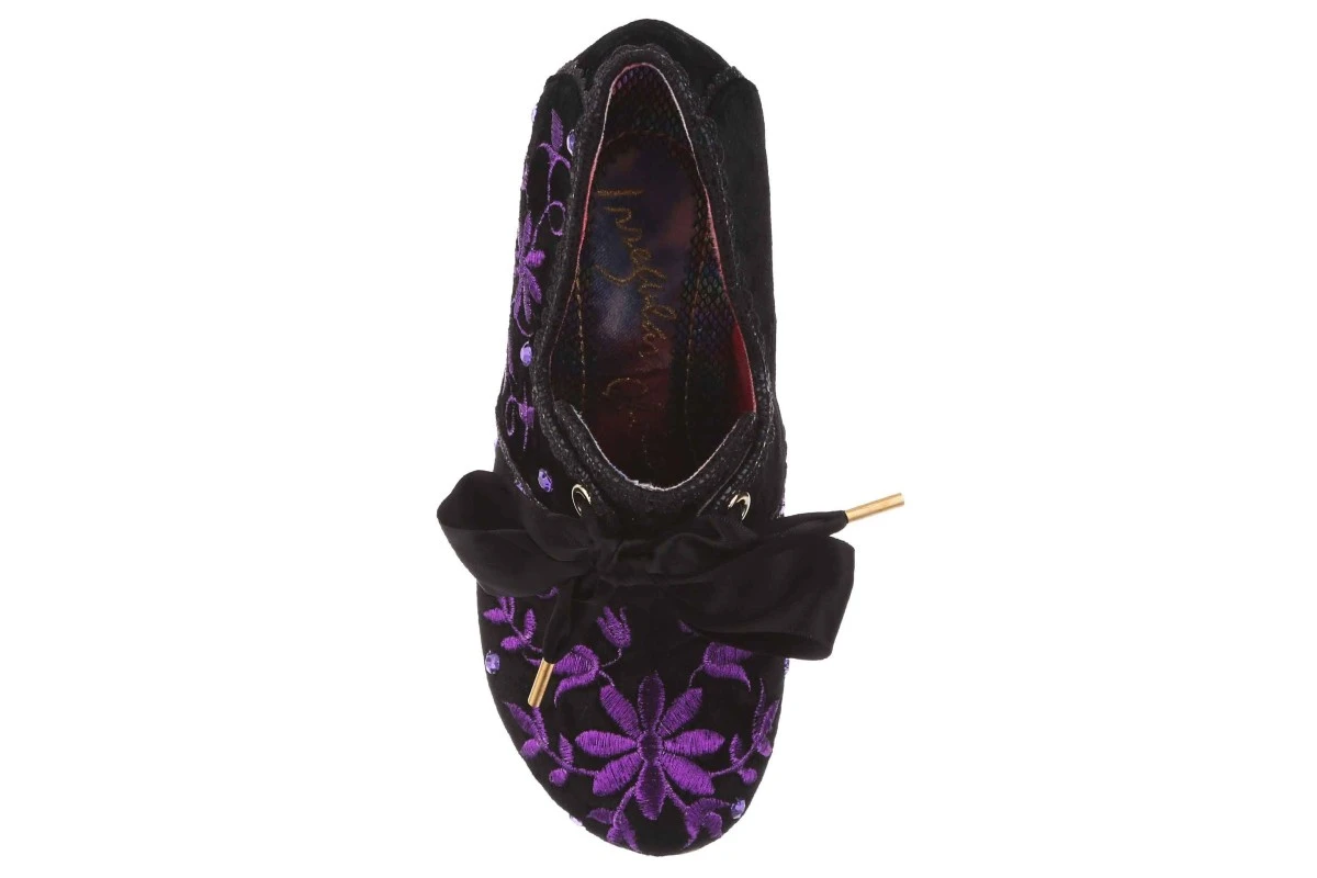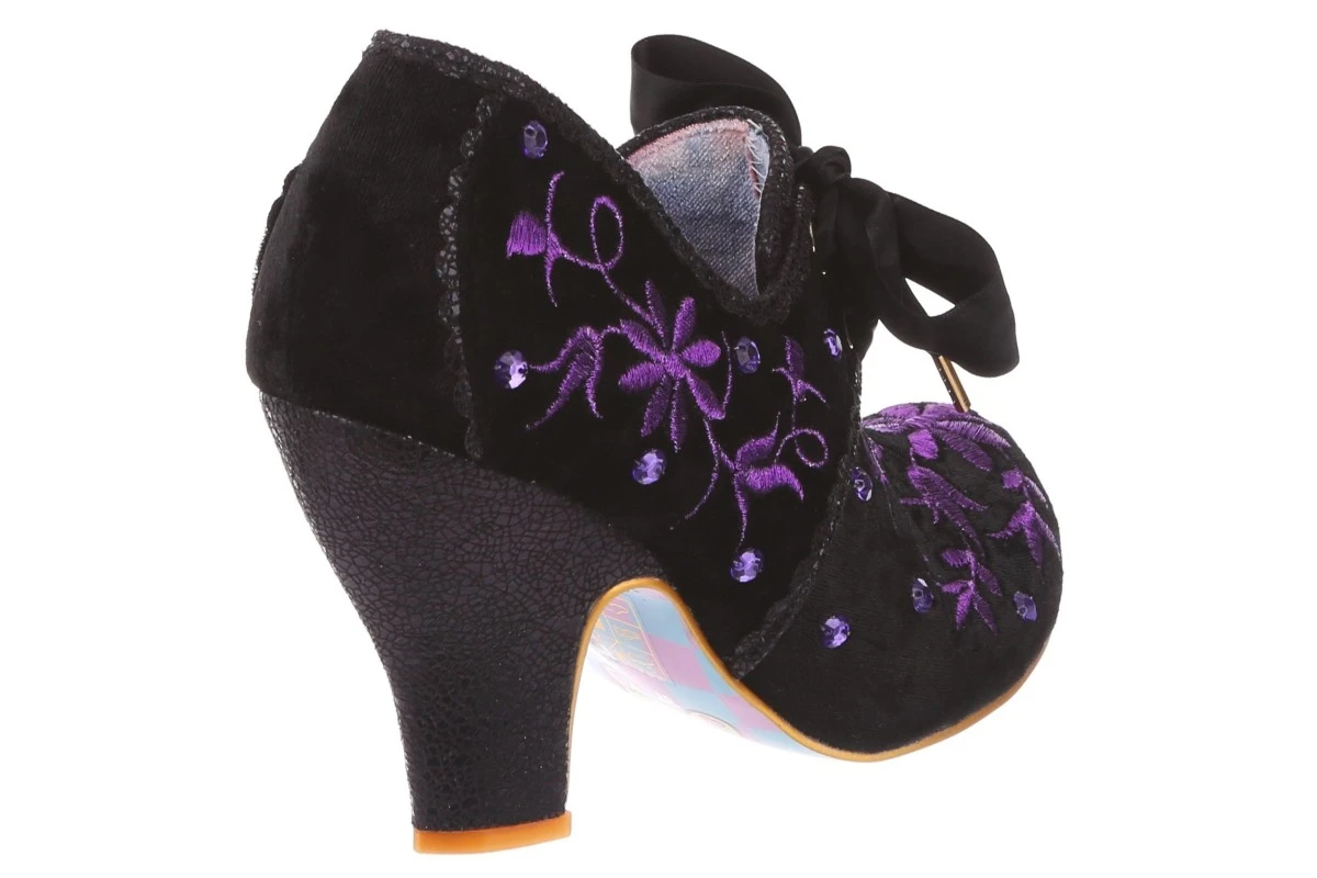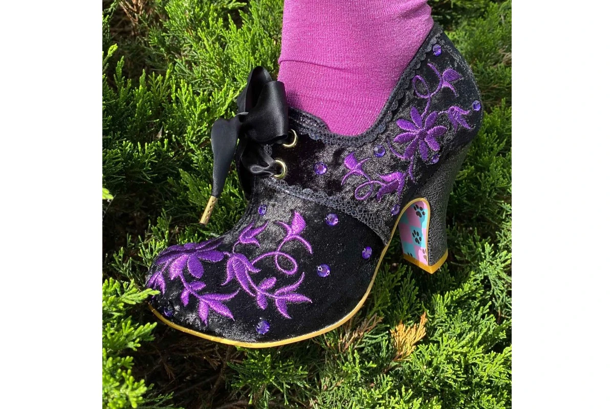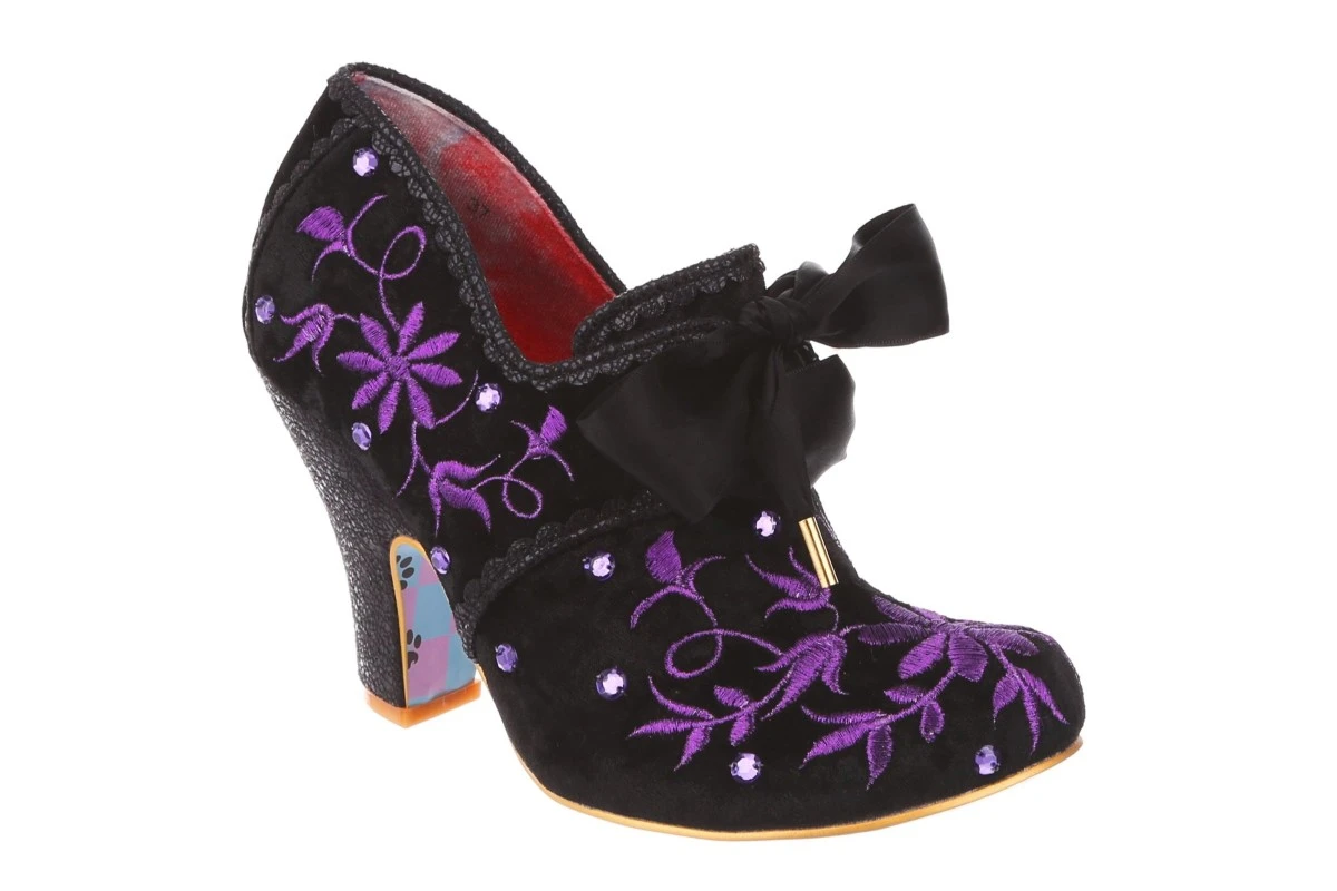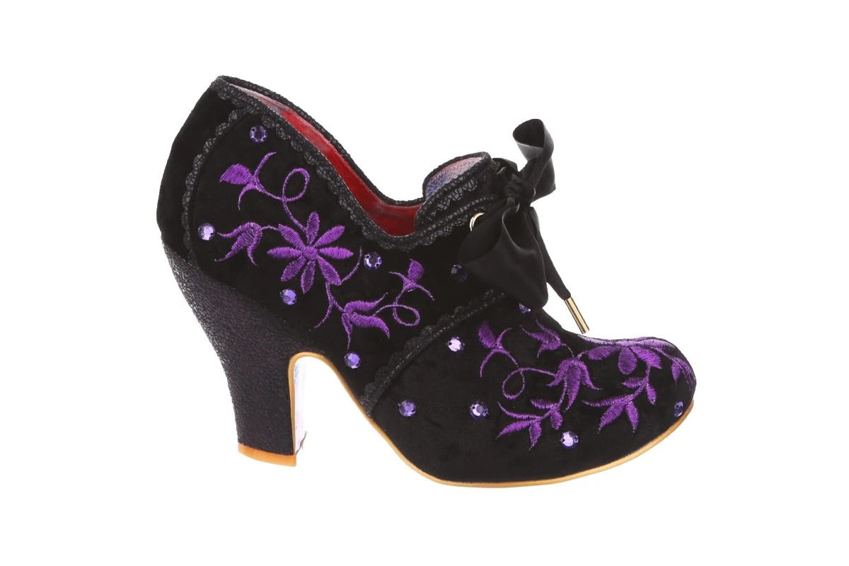 Irregular Choice Penny For Your Thoughts Black Purple Floral Embroidered High Heel Shoes