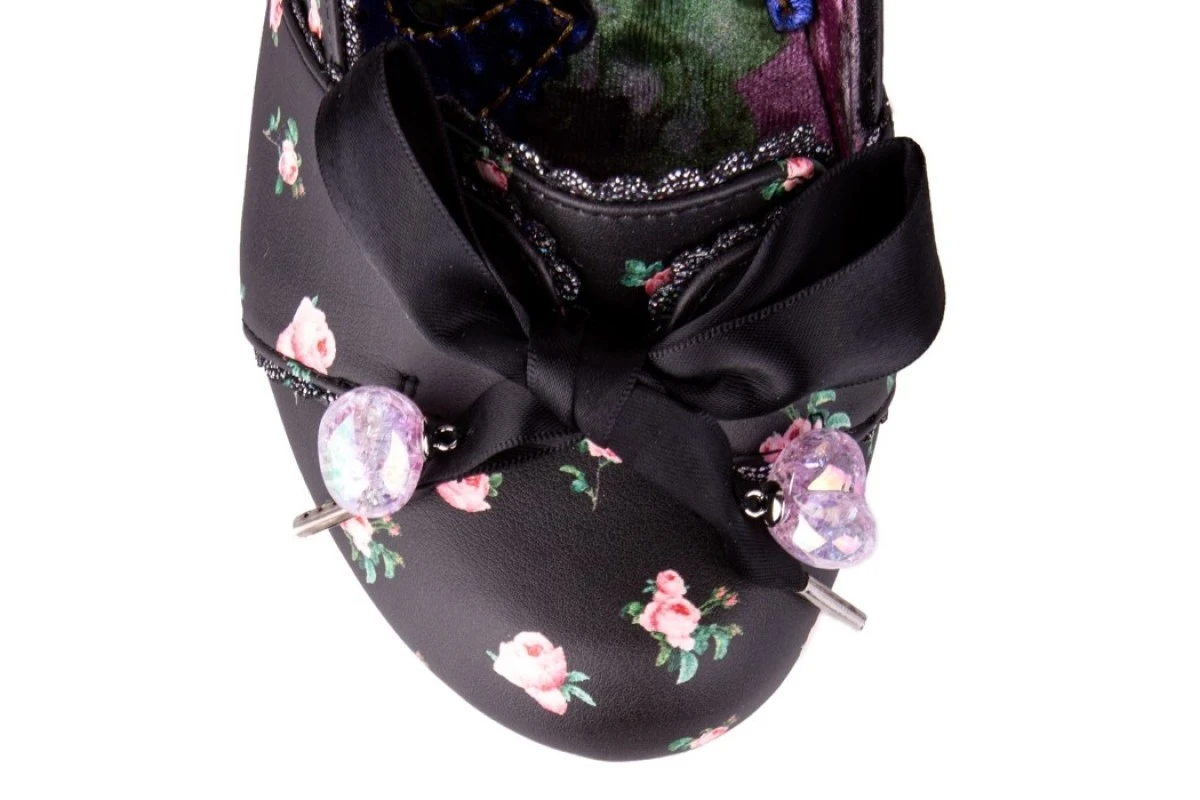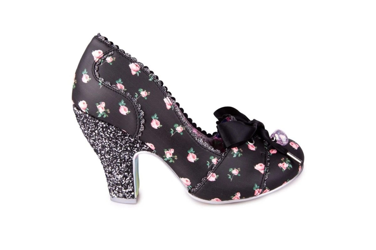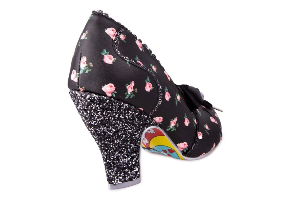 Irregular Choice Tied In A Bow Black Pink Floral Glitter High Heel Shoes