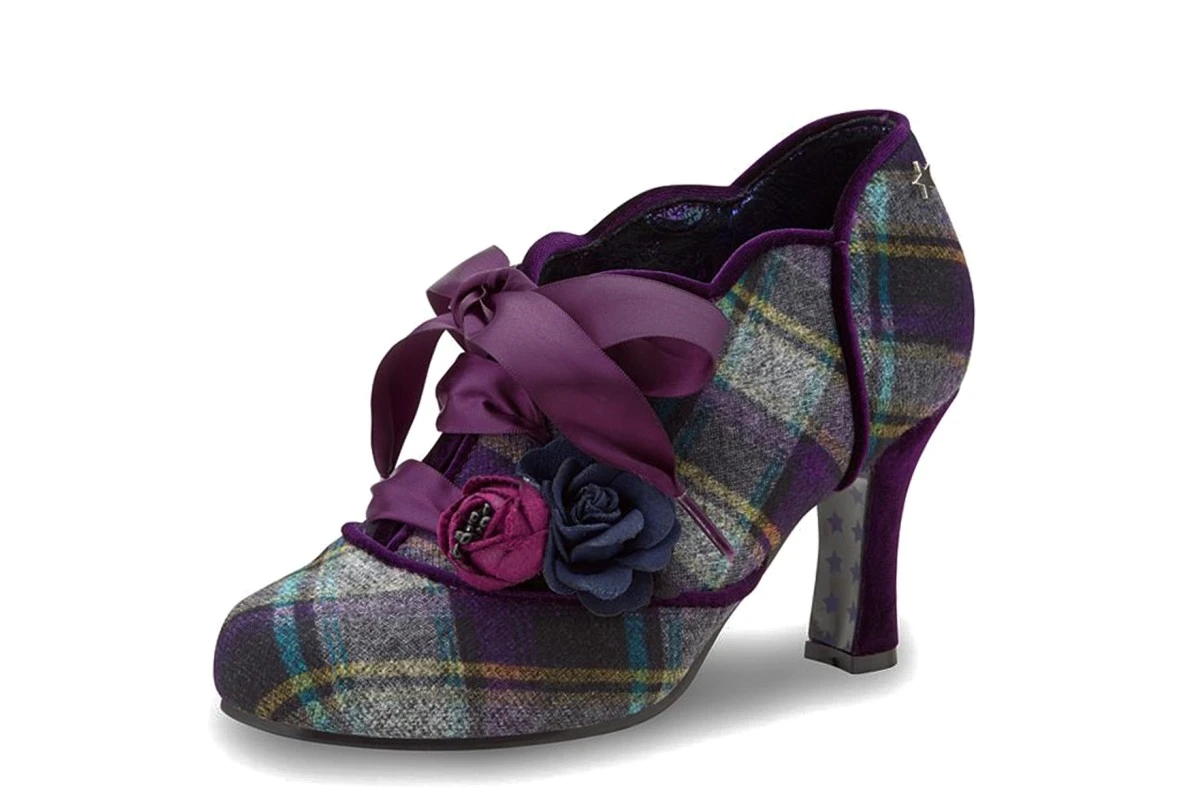 Joe Browns Yazabelle Purple Tartan Checked Lace Up High Heel Shoes
