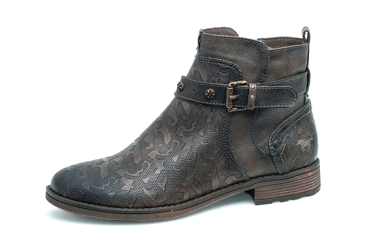 Mustang 1265-515 Medium Brown Textured Faux Leather Low Heel Western Ankle Boots