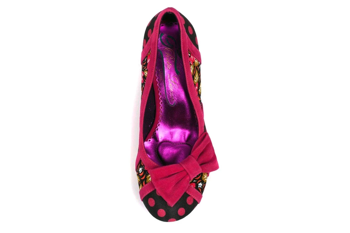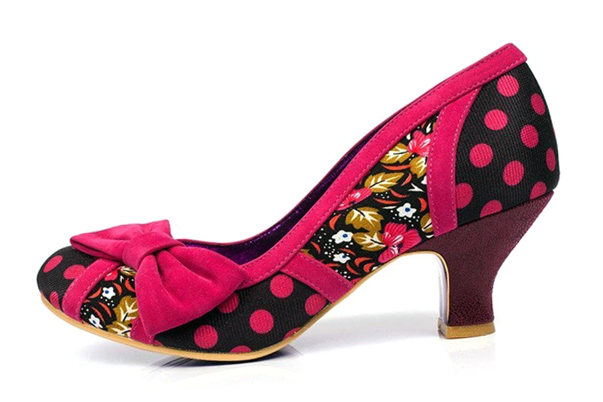 Poetic Licence Shake It Black Pink Polka Dot Floral Mid Heel Bow Court Shoes