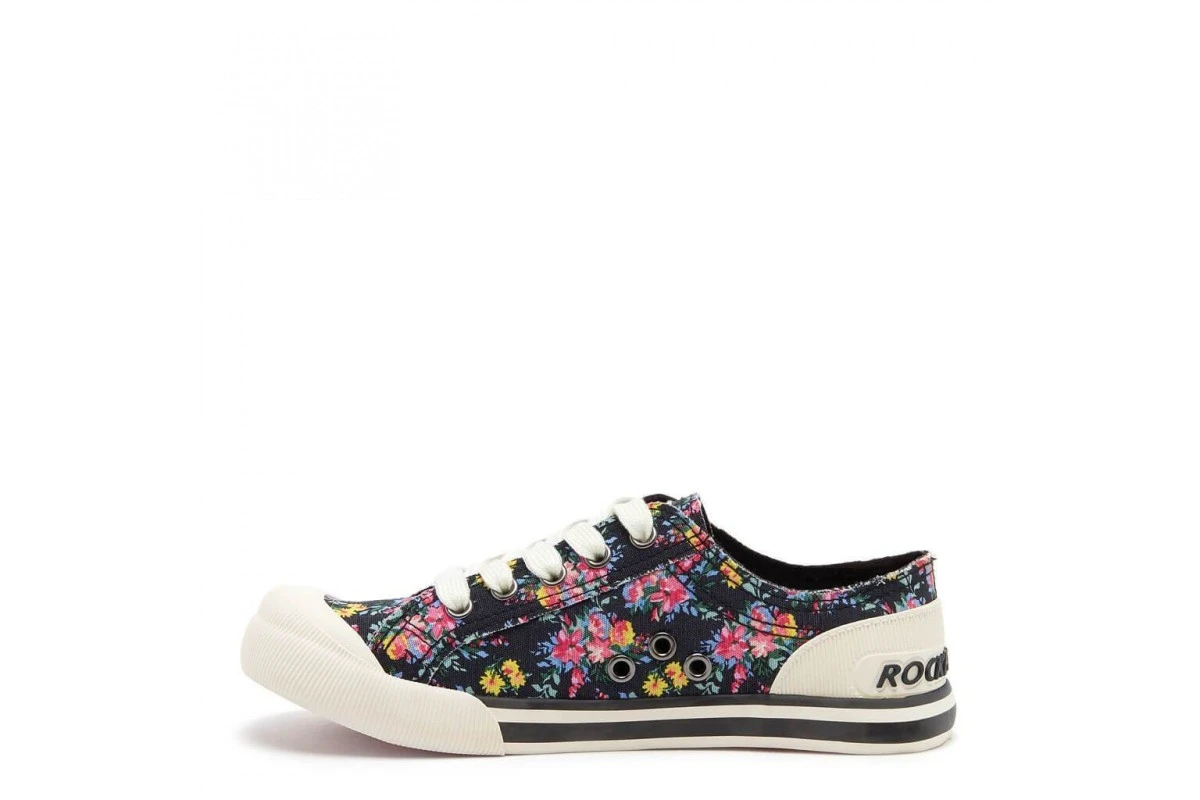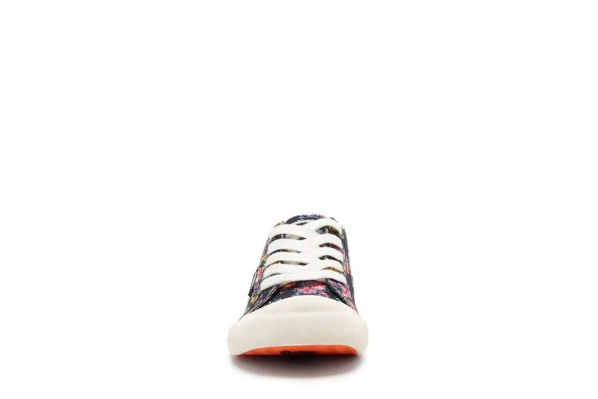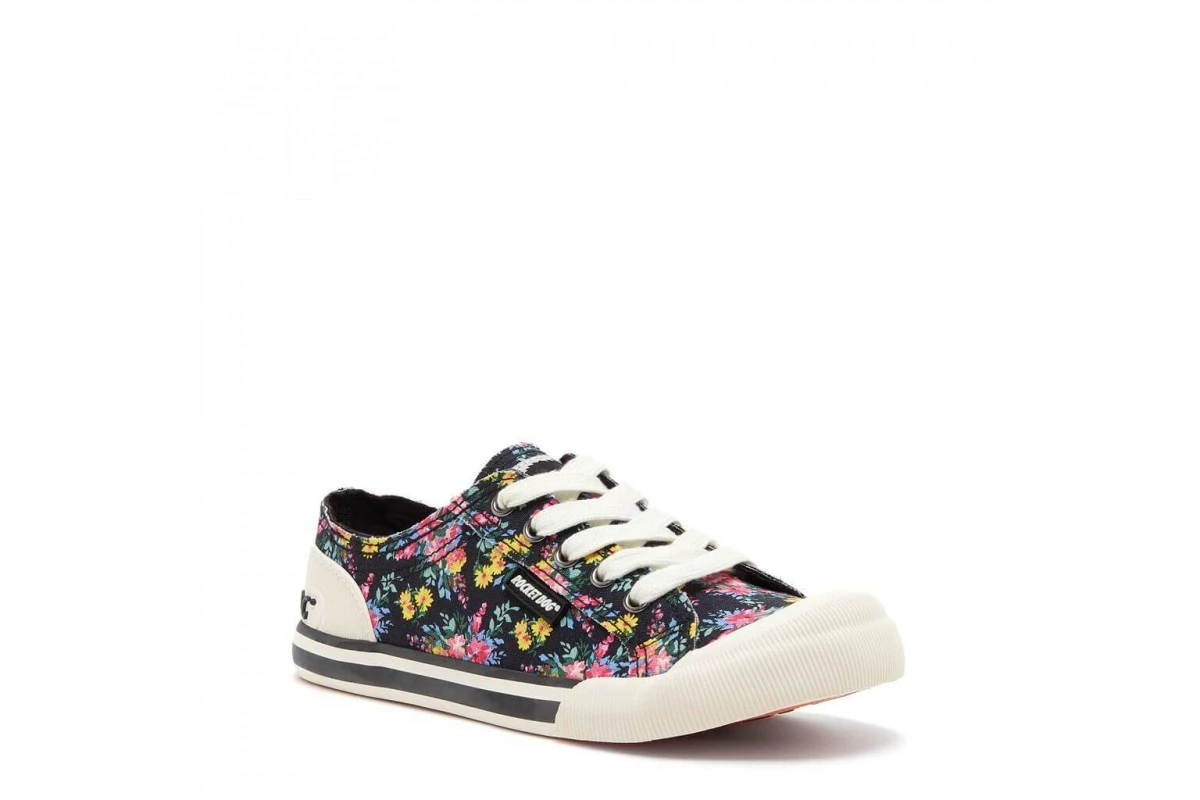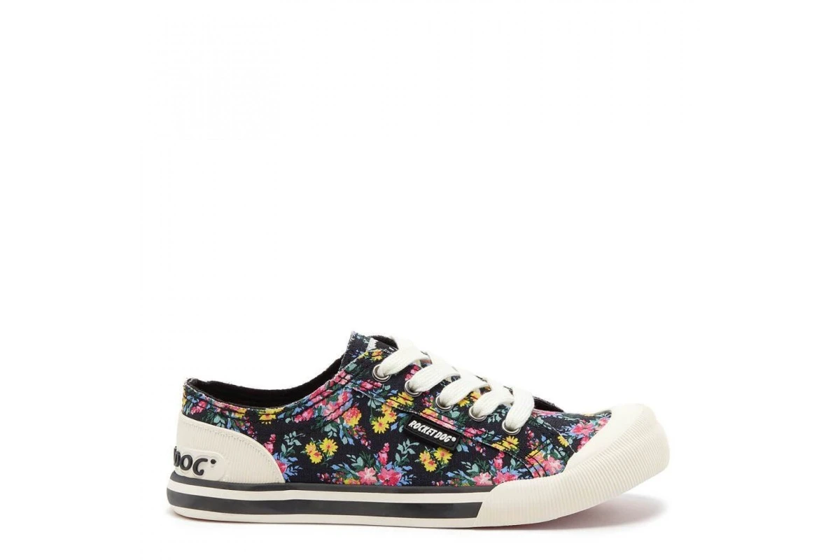 Rocket Dog Jazzin Prairie Place women’s fashion trainers have a lightweight black cotton canvas upper with pretty multicolour floral print. The smooth black fabric shoe lining is teamed with a Plush Zone Foam cushioned insole and a flexible white rubber outsole for ultimate comfort. Rocket Dog Jazzin Prairie Place low tops feature contrasting white laces, plus white rubber heel and toe panels with the signature black stripe around the midsole. The Rocket Dog branding at the heel, side tab and tongue completes the iconic design.