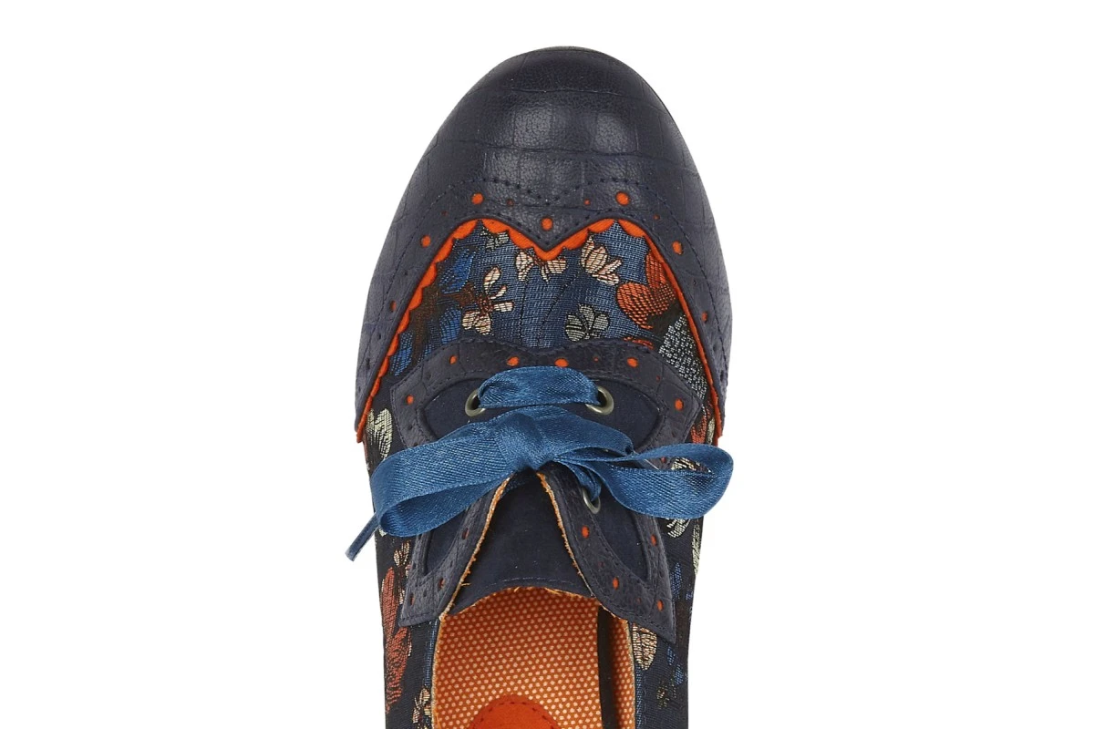 Ruby Shoo Daisy Cyan Turquoise Navy Blue Floral High Heel Lace Up Brogue Shoes