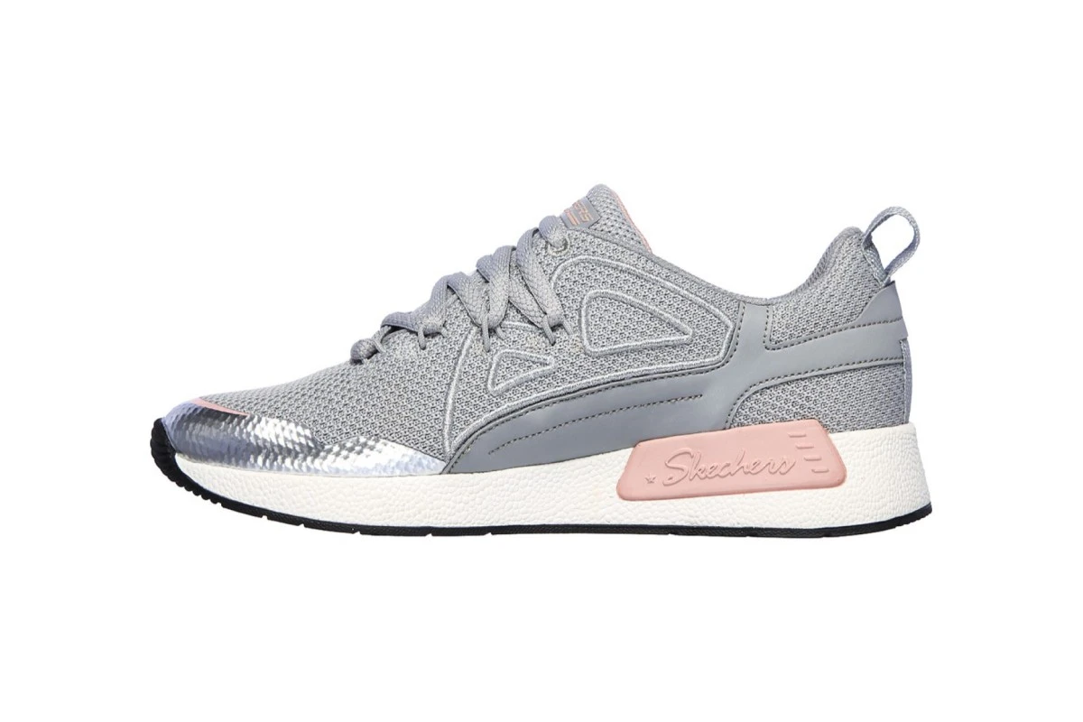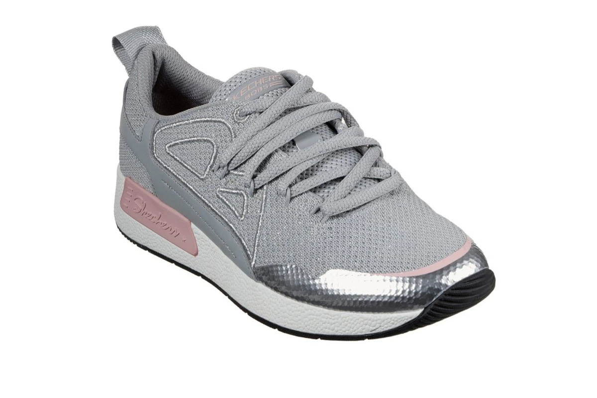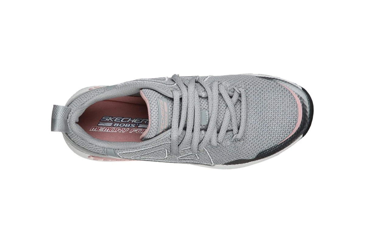 Skechers Bobs B Real Grey Pink Silver Silver Memory Foam Trainers