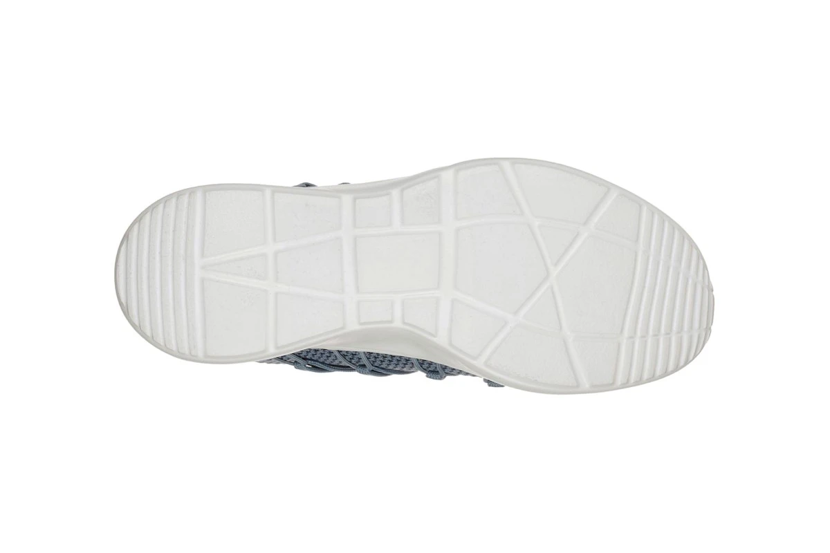 The soft woven mesh fabric upper on these new Skechers Bobs Sparrow Sneaker Club women’s trainers comes in a stunning slate blue colour. The upper has breathable textured panels and a metallic side ‘S’ logo along with the Skechers logo on the tongue. The classic low top style is given a fresh update with a high apex and a slip-on design with adjustable that can be adjusted to pull front panel in tighter.