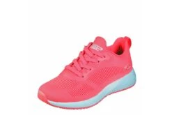 Skechers new Bobs Squad Glowrider Women’s trainers combine casual sporty style and every-day comfort. The bright neon pink mesh fabric upper (that looks a much brighter neon colour in real life than the photo’s show) features flexible textured ribbed panels and smooth synthetic overlays around the laces for durability.