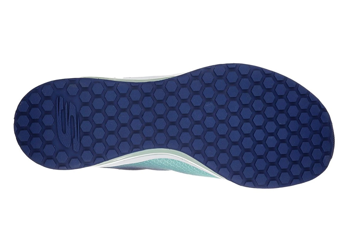 Skechers new Women’s Skech Air Element trainers feature a sleek one piece woven mesh fabric upper in a stunning navy and green ombre print. The classic low top design has a lace up front panel with a padded collar and padded tongue plus a two pairs of laces, one white and one navy. Skechers Skech Air Element sport shoes have a full length Air-Cooled memory foam cushioned insole plus a full length transparent shock absorbing air cushioned mid sole for ultimate comfort. The inbuilt 1.25 inch heel teamed with a navy traction rubber outsole helps to create a truly comfortable fit. The branded fabric pull-on tab at the back of the shoe completes the stylish design.