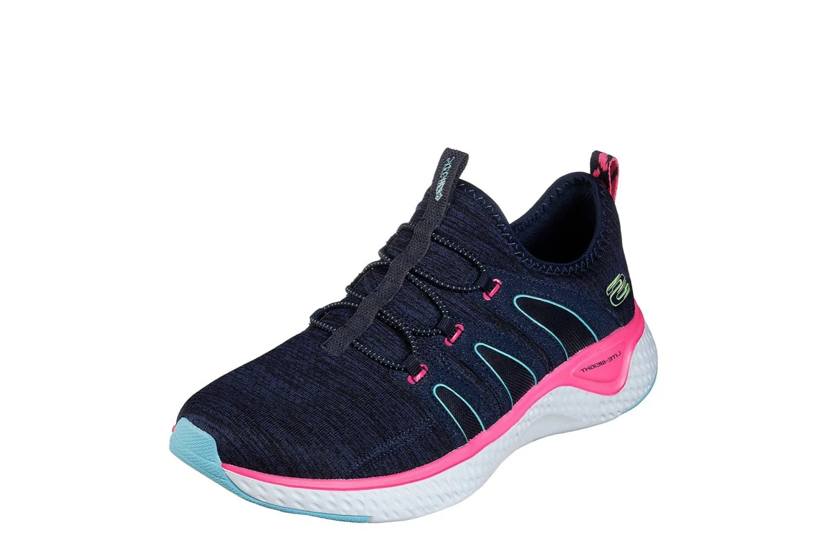These Skechers women’s fashion trainers have a simple slip on design with fixed elasticated mock laces, a high apex plus a stretch knit collar and instep panel. Skechers Solar Fuse Electric Pulse shoes have an Air Cooled memory foam comfort insole, a shock absorbing midsole and a flexible outsole with contrast rubber panels. The inbuilt 1.25 inch heel creates extra comfort.