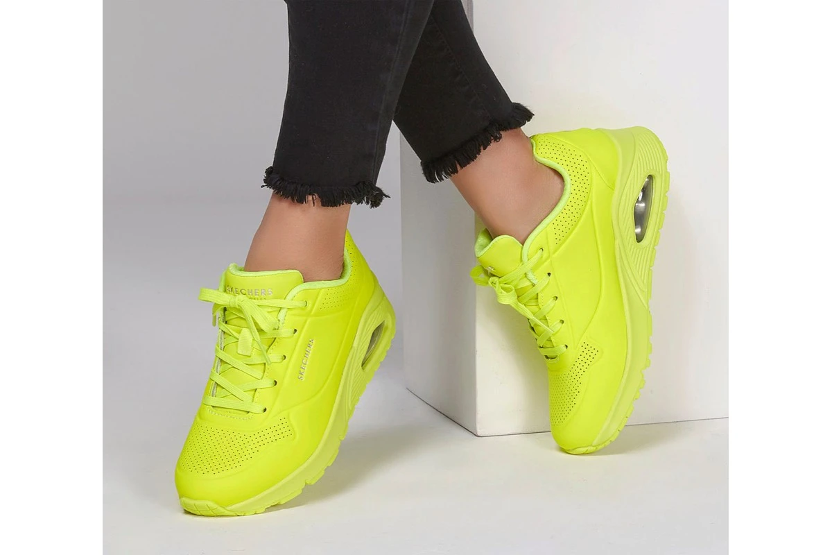 Skechers Street Uno Night Shades Neon Yellow Memory Foam Low Top Trainers
