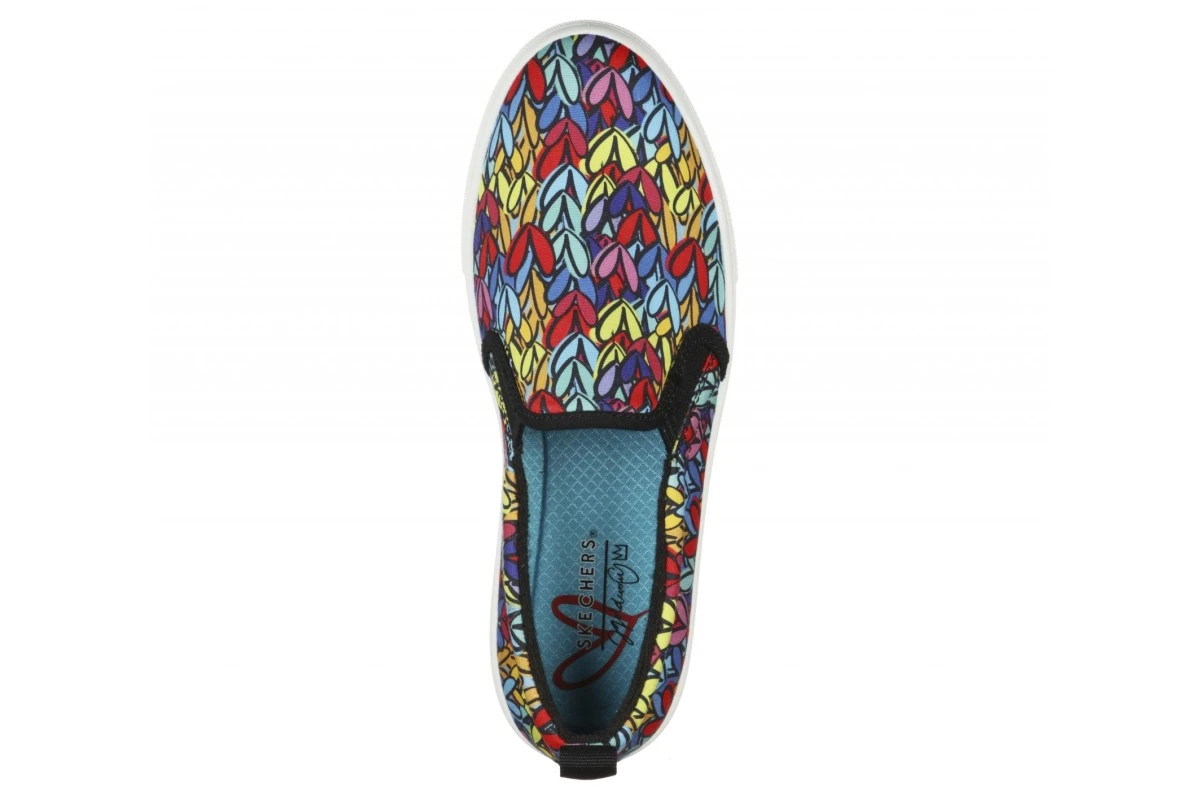 Skechers Poppy Heart Inlove Women’s trainers are new from the Skechers x J Goldcrown collection – featuring the Muralist’s much adored ‘LoveWall’ design. The canvas fabric upper has a stunning multi-coloured overlapping heart print, each with a black sketched style outline, teamed with black trims around the collar of the shoe for a stylish finish. The simple slip-on style has elasticated side panels for ease of fit and a memory foam footbed for cushioned comfort. Skechers Poppy Heart Inlove fashion shoes have a chunky white rubber outsole that keeps the design on-trend and not only provides good grip but is also scented with lavender for a subtle freshness. These Skechers kicks are machine washable too, just be sure to wash on a cool, gentle cycle and leave out to air dry.
